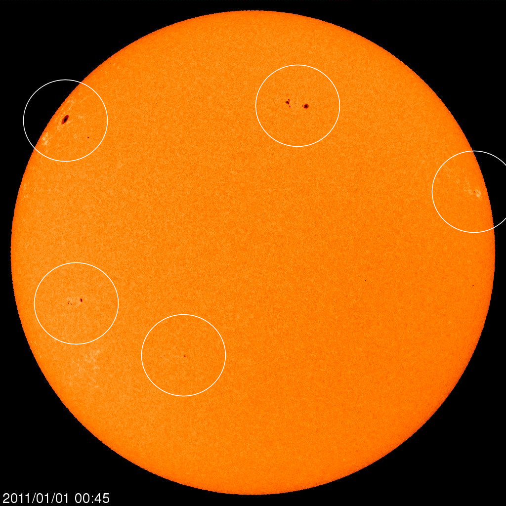 2011 beginnt an Neujahr mit einer Flut von 5 neuen Sonnenflecken auf der Erde zugewandten Seite.